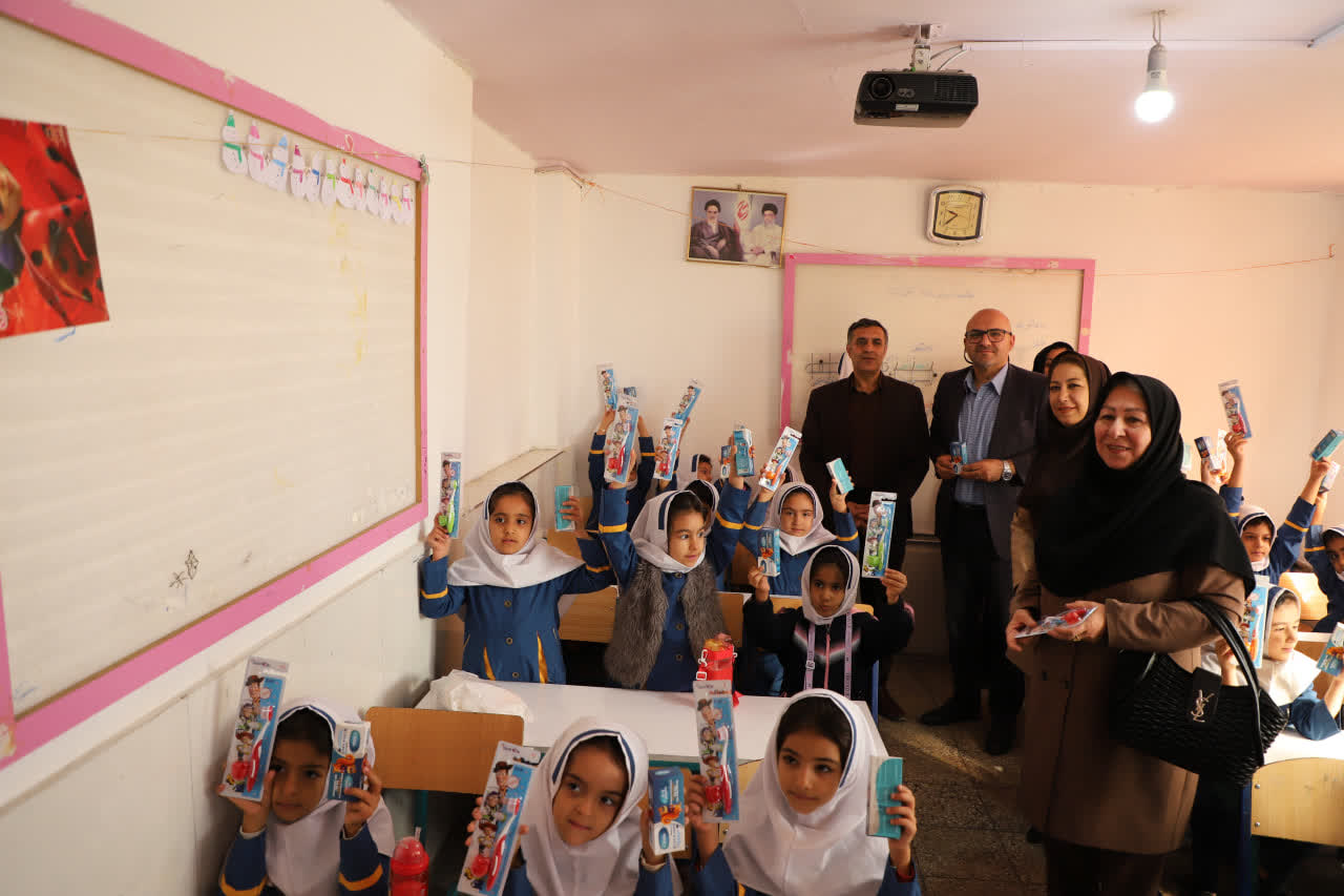 در پایان با توزیع 380 پک مسواک و خمیر دندان تهیه شده توسط گروه سلامت دهان و دندان معاونت بهداشتی در بین دانش آموزان بر اهمیت دندان 6 و نگهداری این دندان و نحوه صحیح مسواک زدن به والدین دانش آموزان پایه اول این مدرسه آموزش داده شد.