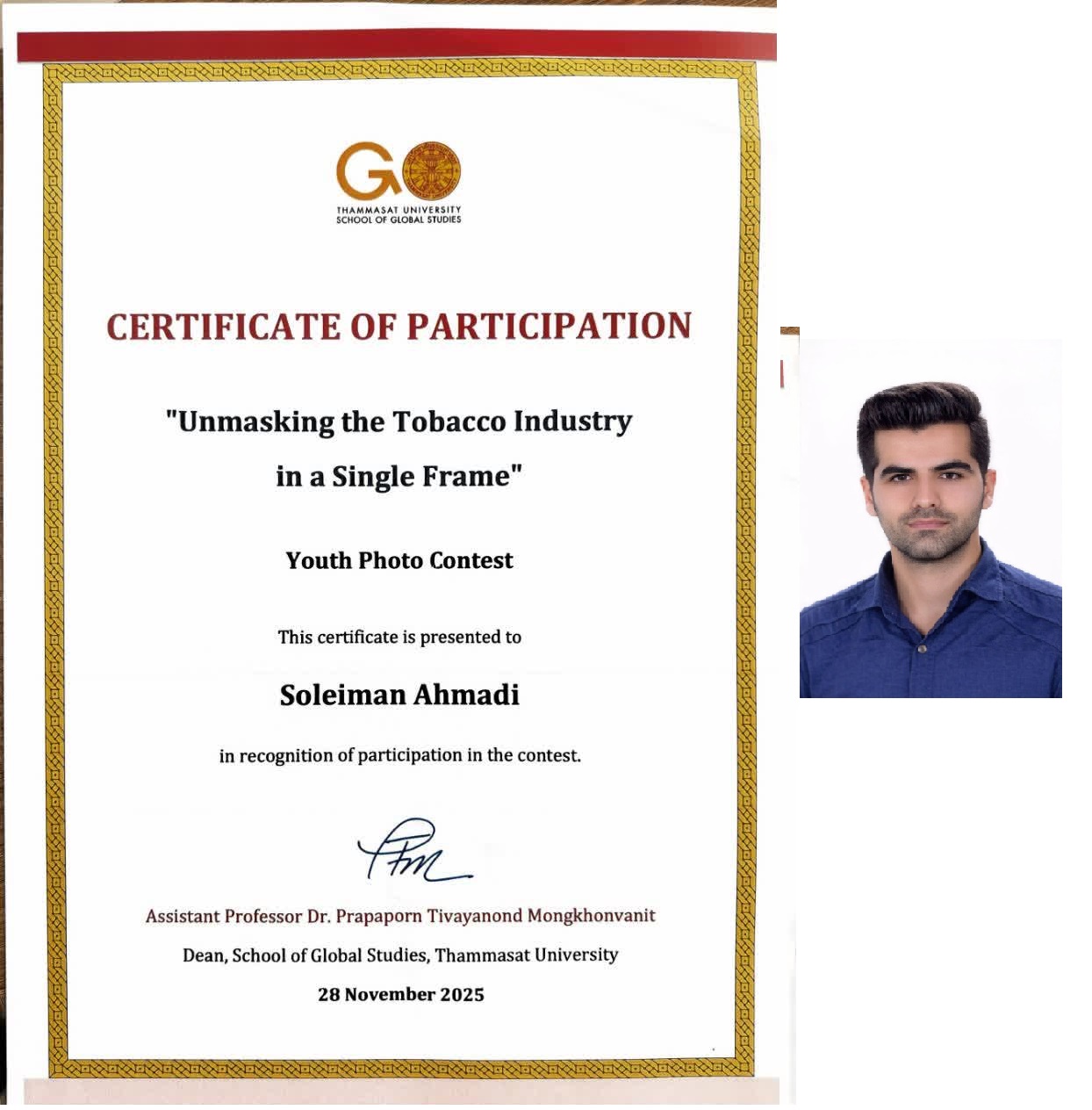 مسابقه جهانی عکاسی جوانان با عنوان «پردهبرداری از صنعت دخانیات در یک قاب» با هدف افزایش آگاهی درباره شیوههای تأثیرگذاری صنعت دخانیات بر جوانان ۱۳ تا ۳۵ ساله، از ۱۲ آگوست ۲۰۲۵ همزمان با روز جهانی جوانان آغاز و تا ۱۲ سپتامبر ۲۰۲۵ برگزار شد.