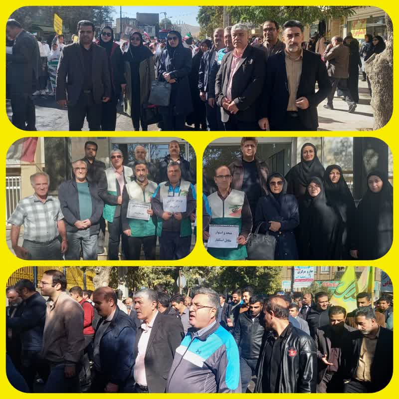 حضور پرشور و گسترده کارکنان شبکه بهداشت و درمان شهرستان بیجار در راهپیمایی ۱۳ آبان و روز دانش آموز
